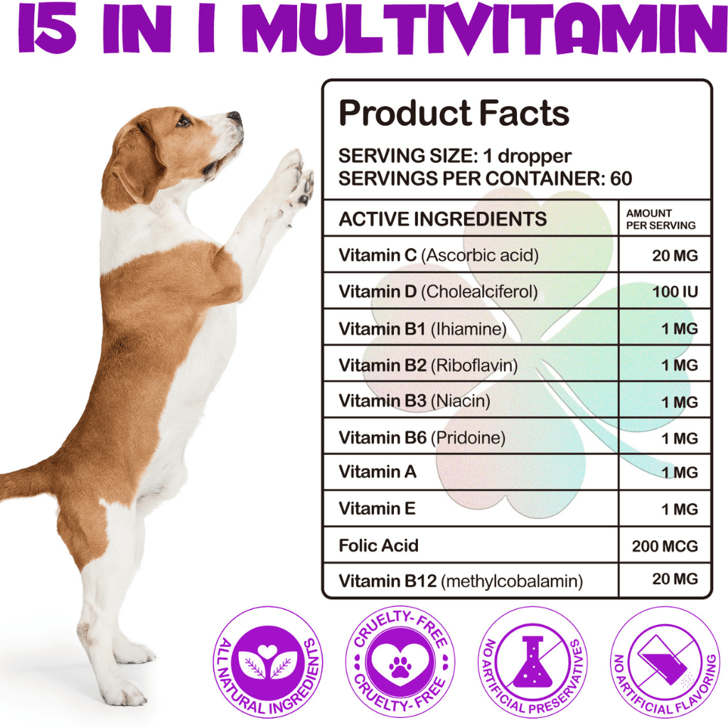 15-in-1 Dog Multivitamin Drops | Liquid Vitamins for Puppies & Adult Dogs