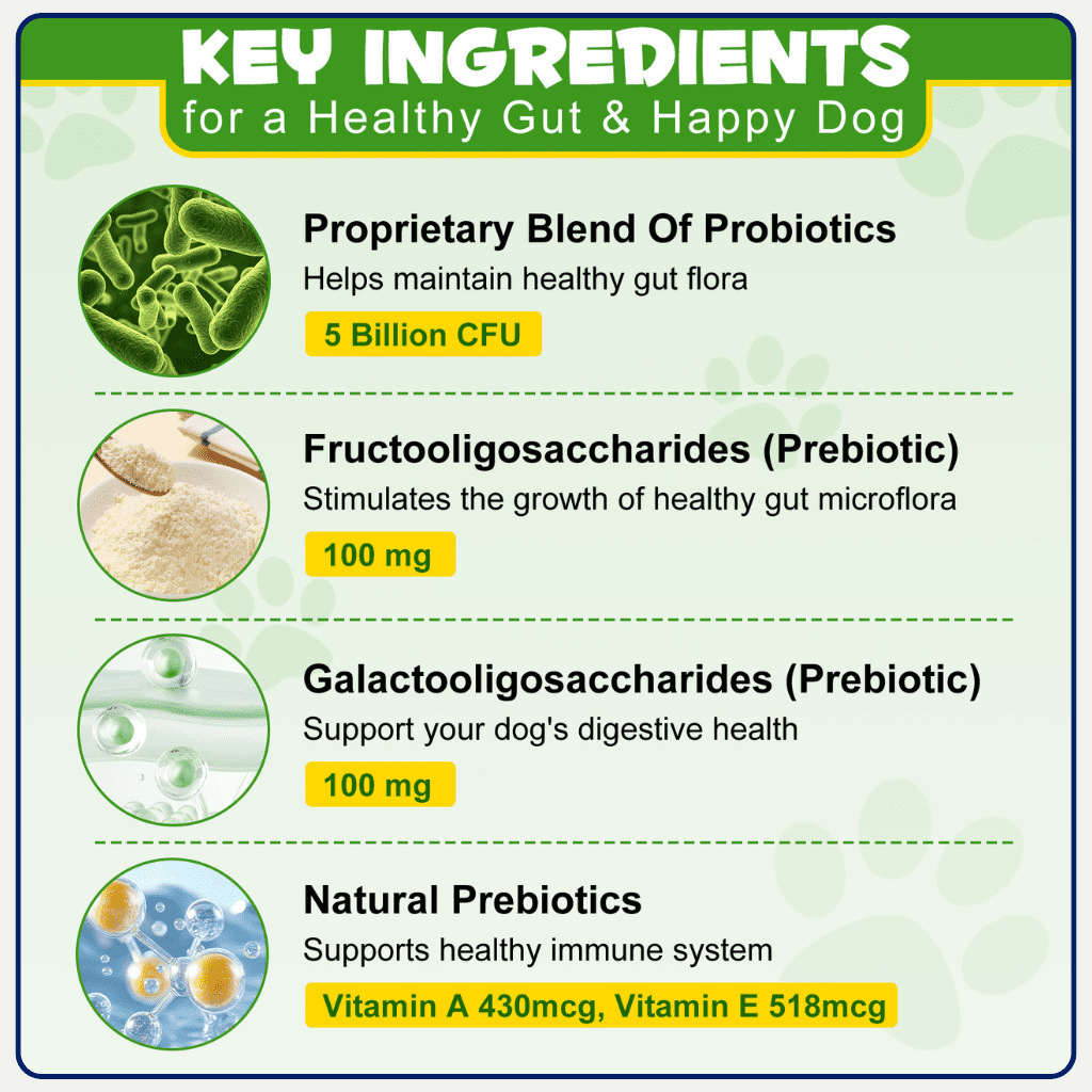 Supports healthy digestion, gut balance and immunity with 12 probiotic strains, prebiotics and vitamins. Ideal for dogs with sensitive stomachs, allergies or digestive issues.