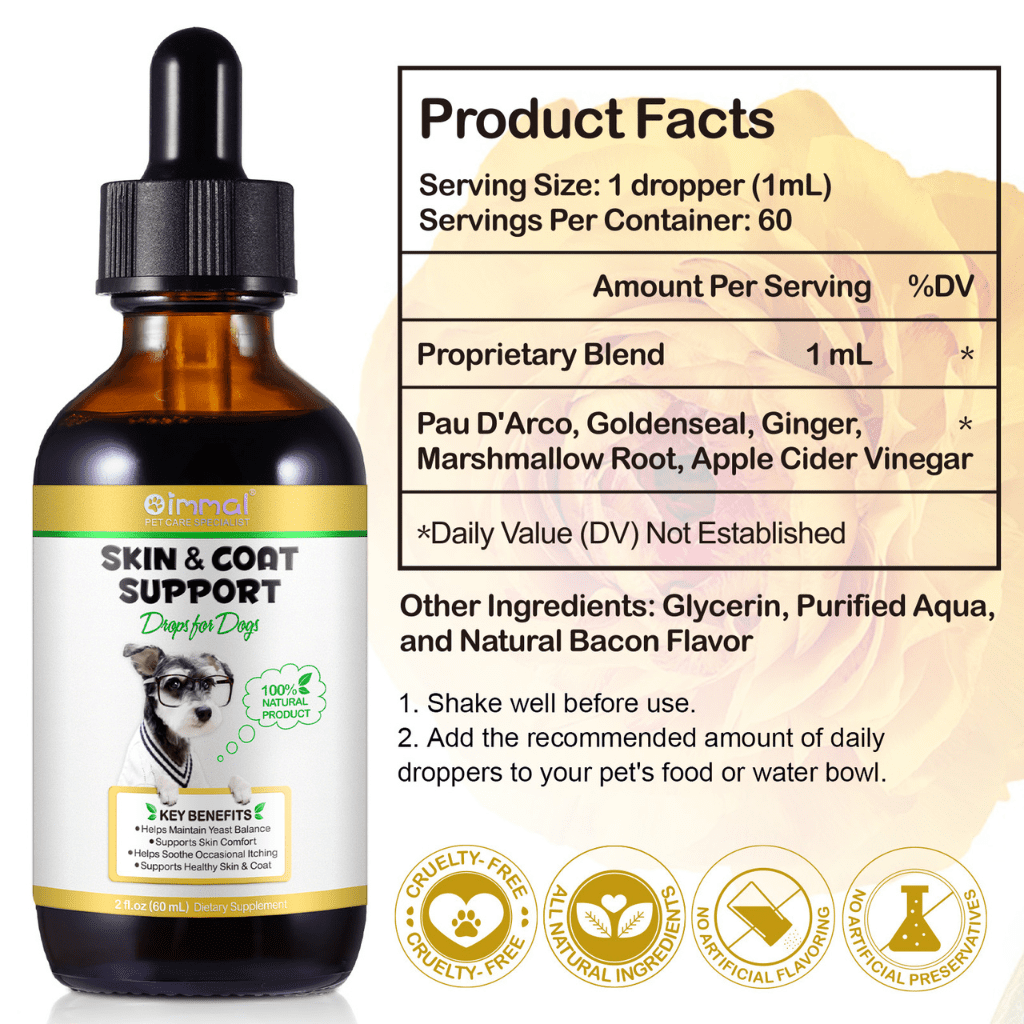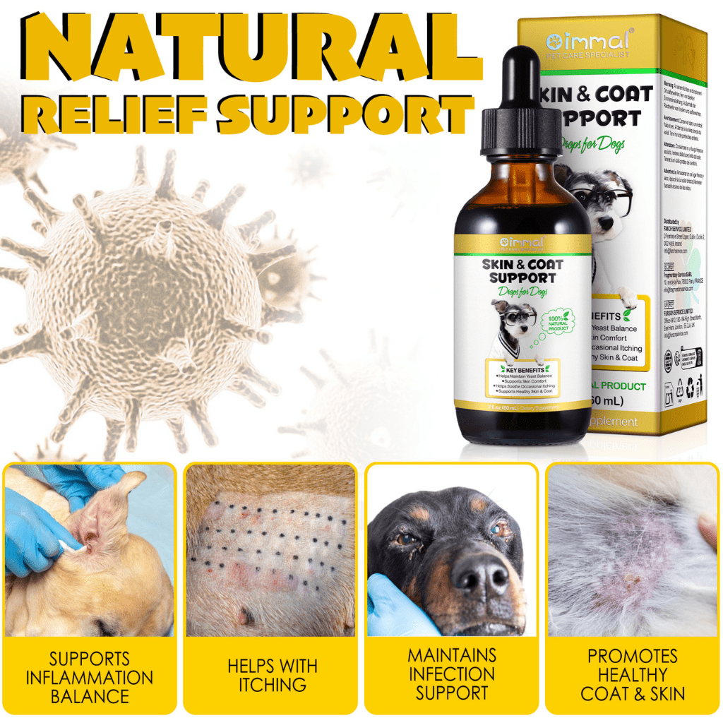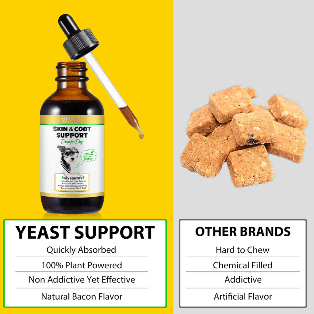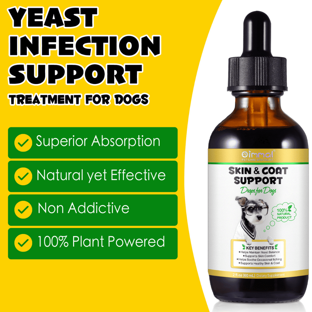 Natural liquid drops for dogs that help relieve yeast imbalance, itchy skin and ear discomfort. Plant-powered formula supports healthy skin, coat and immune function. Easy daily use.
