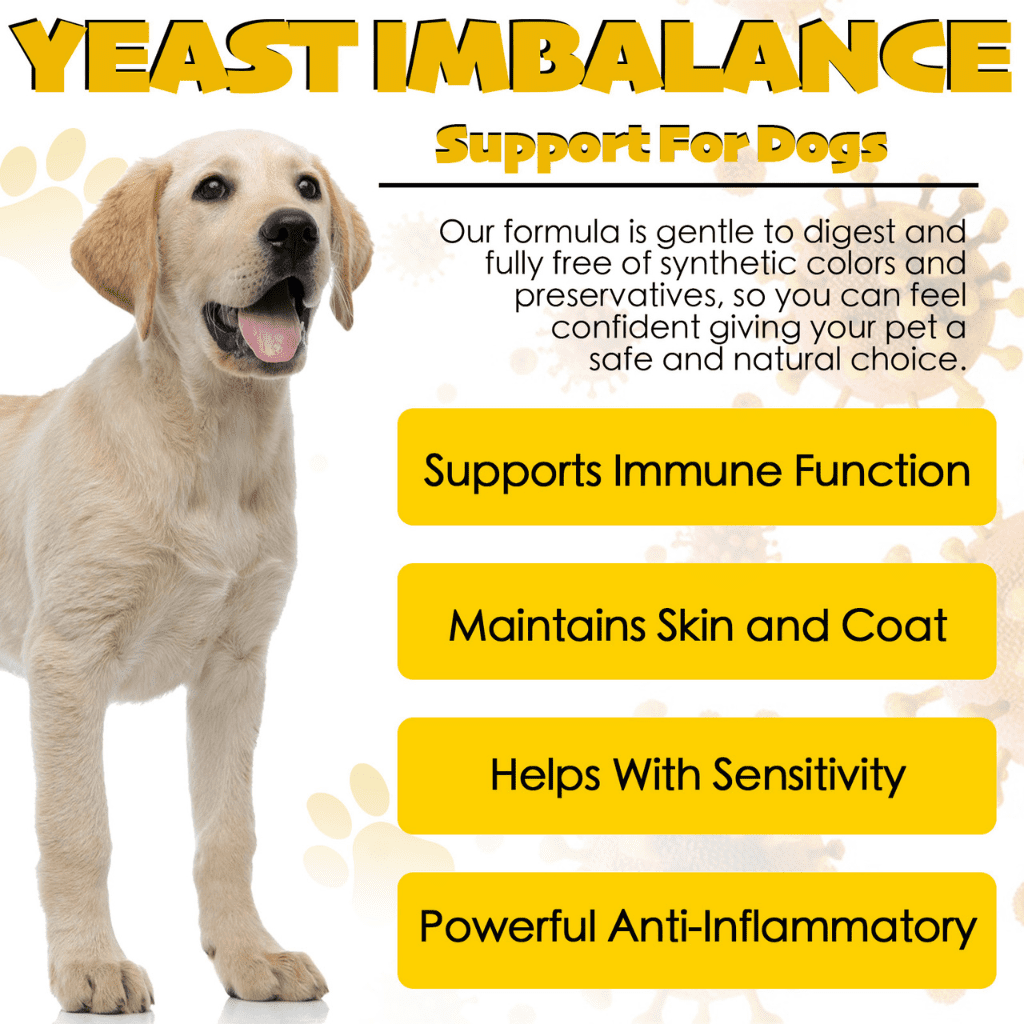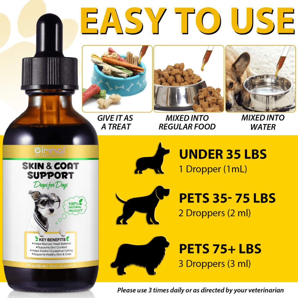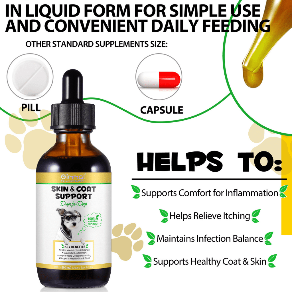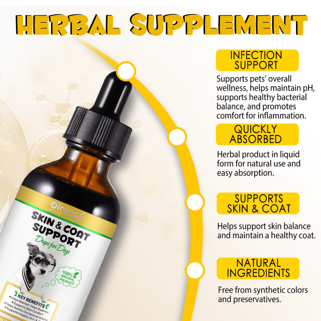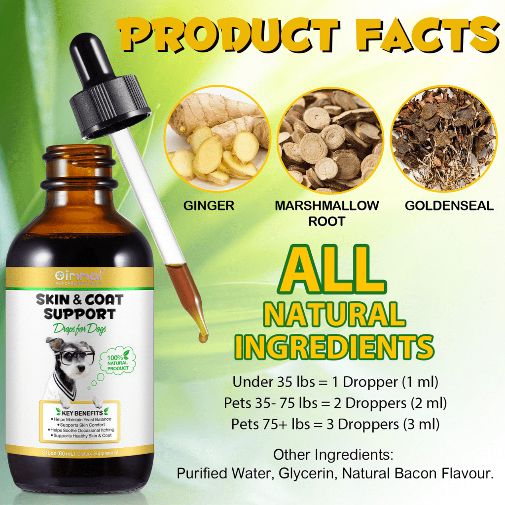 Natural liquid drops for dogs that help relieve yeast imbalance, itchy skin and ear discomfort. Plant-powered formula supports healthy skin, coat and immune function. Easy daily use.