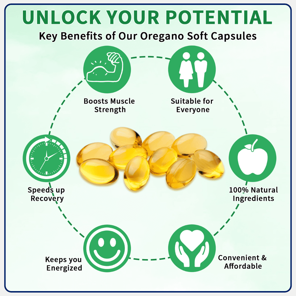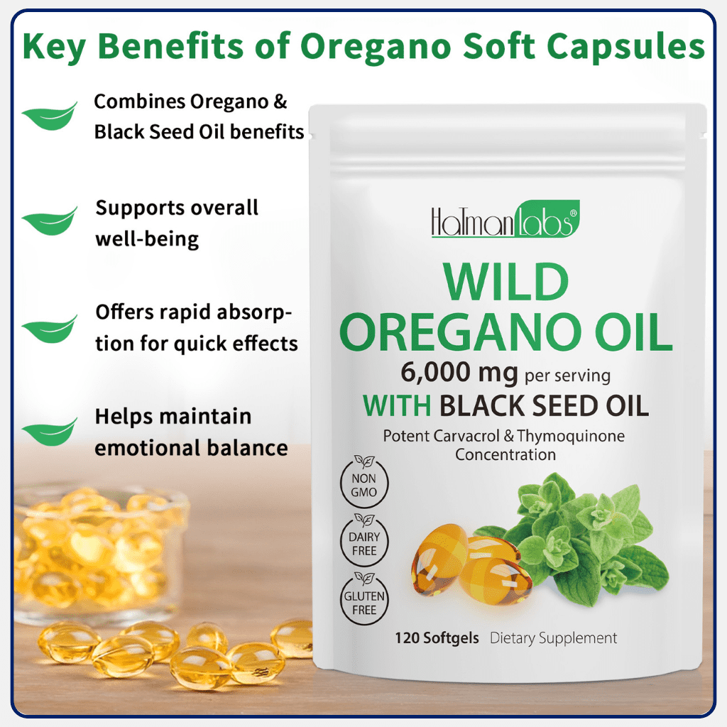 Our high-strength Oil of Oregano 6000mg Softgels with Black Seed Oil are expertly formulated to support everyday wellness. Combining potent oregano extract with nutrient-rich black seed oil, this advanced supplement delivers powerful antioxidant and immune support in an easy-to-take softgel.