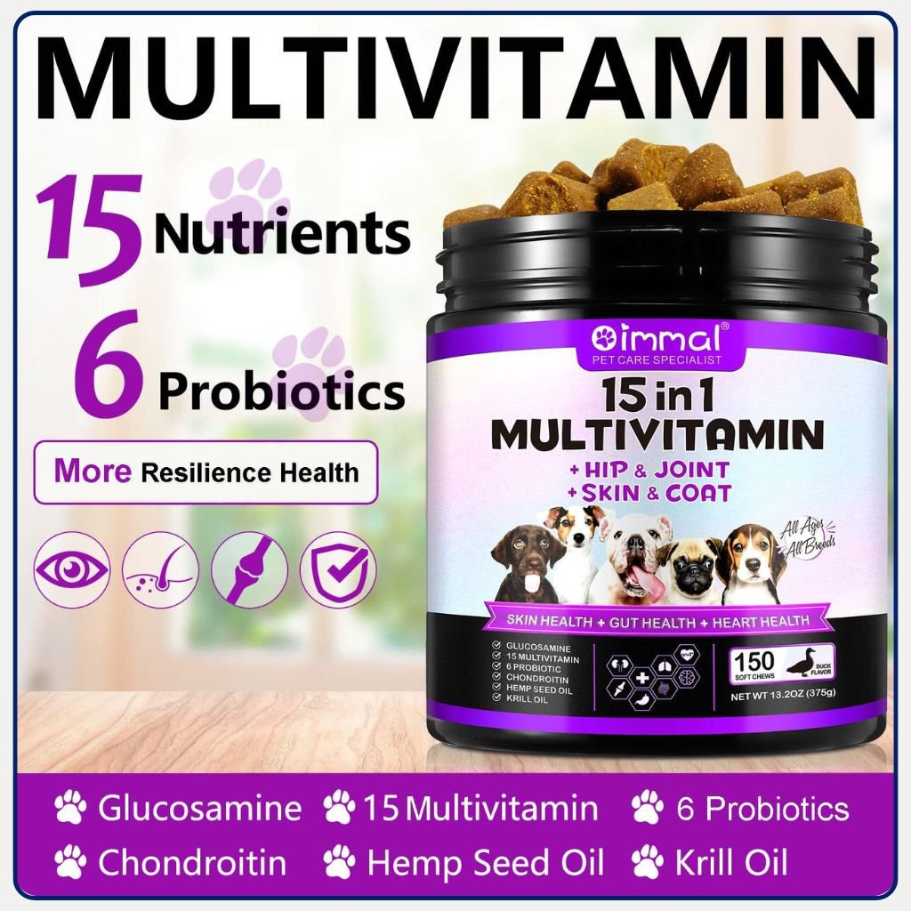 Oimmal 15-in-1 Multivitamin Dog Chews for Hip, Joint, Skin & Gut Health