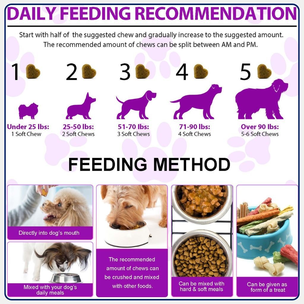 Feed daily based on your dog’s weight. Can be given as a treat or mixed with food. Suitable for all ages, sizes and breeds. Start with half the recommended amount for best results.