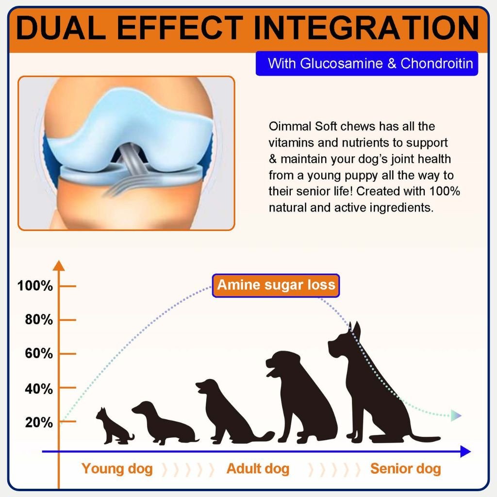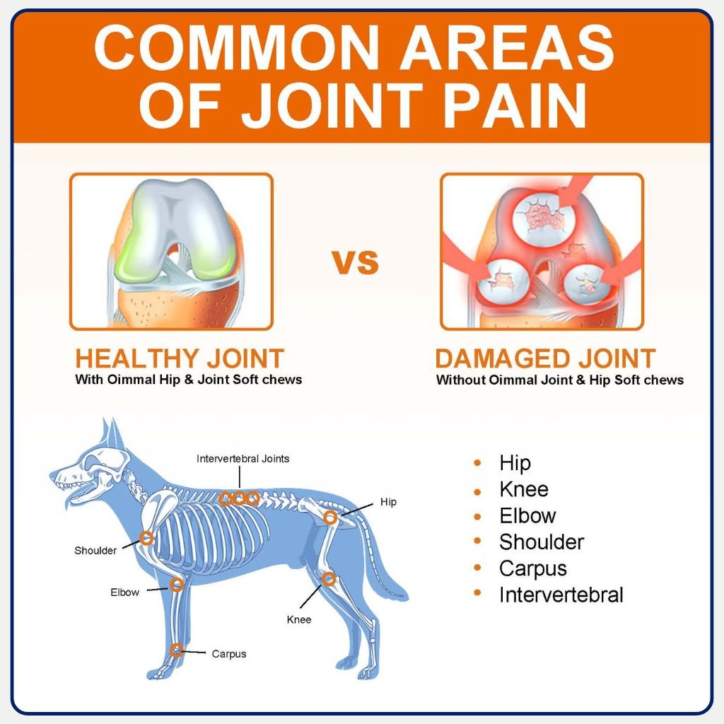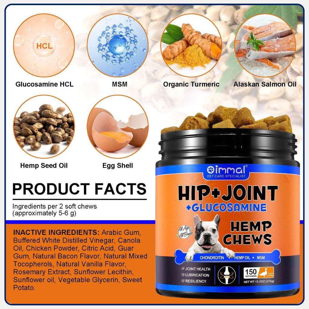 Support your dog’s joint health with Oimmal Hip & Joint Chews. Glucosamine, chondroitin, MSM & hemp oil help mobility, lubrication and flexibility for dogs of all ages.