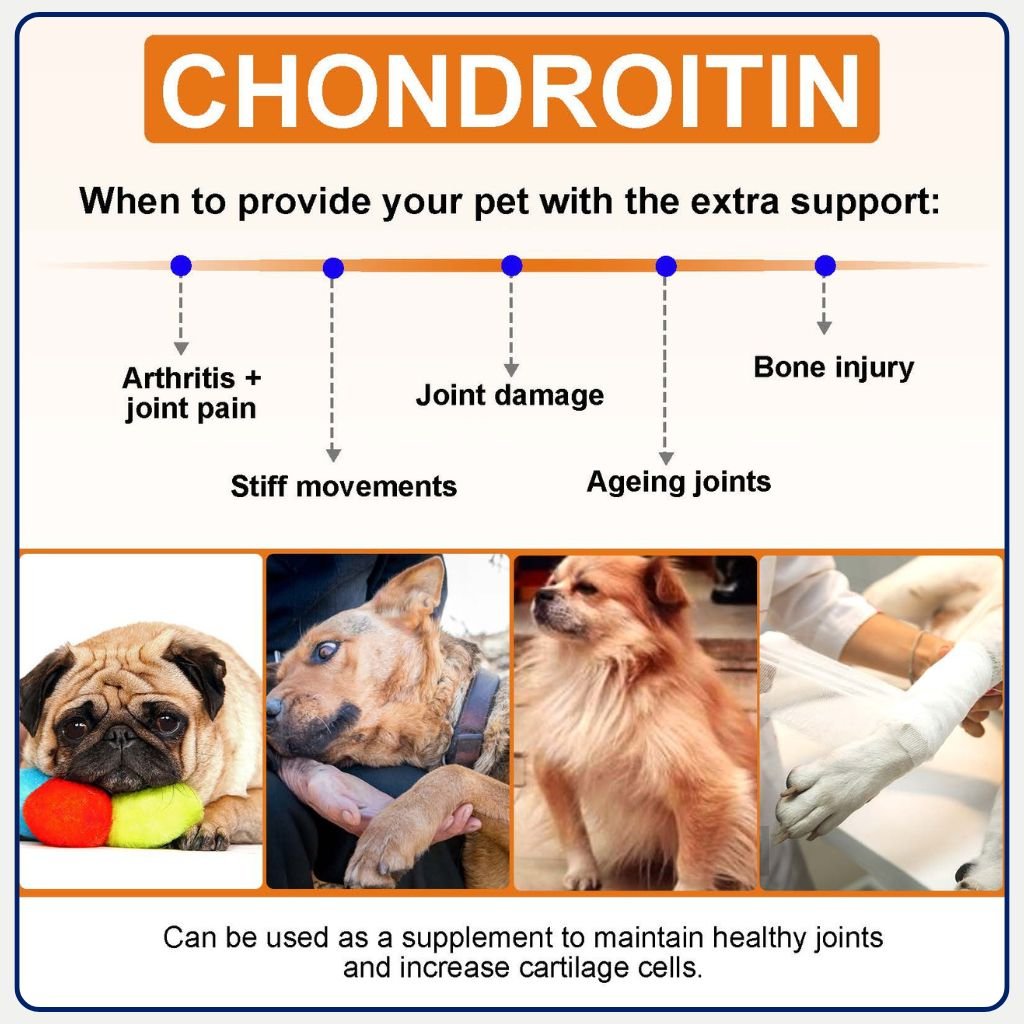 - Chondroitin – aids joint lubrication and cushioning